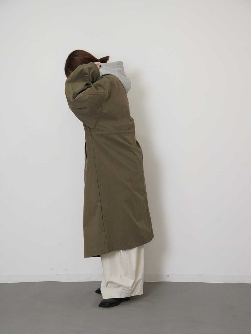 ・普通のミリタリーコートだと、カジュアルすぎるなーと思っていた方にも是非おすすめしたいです!