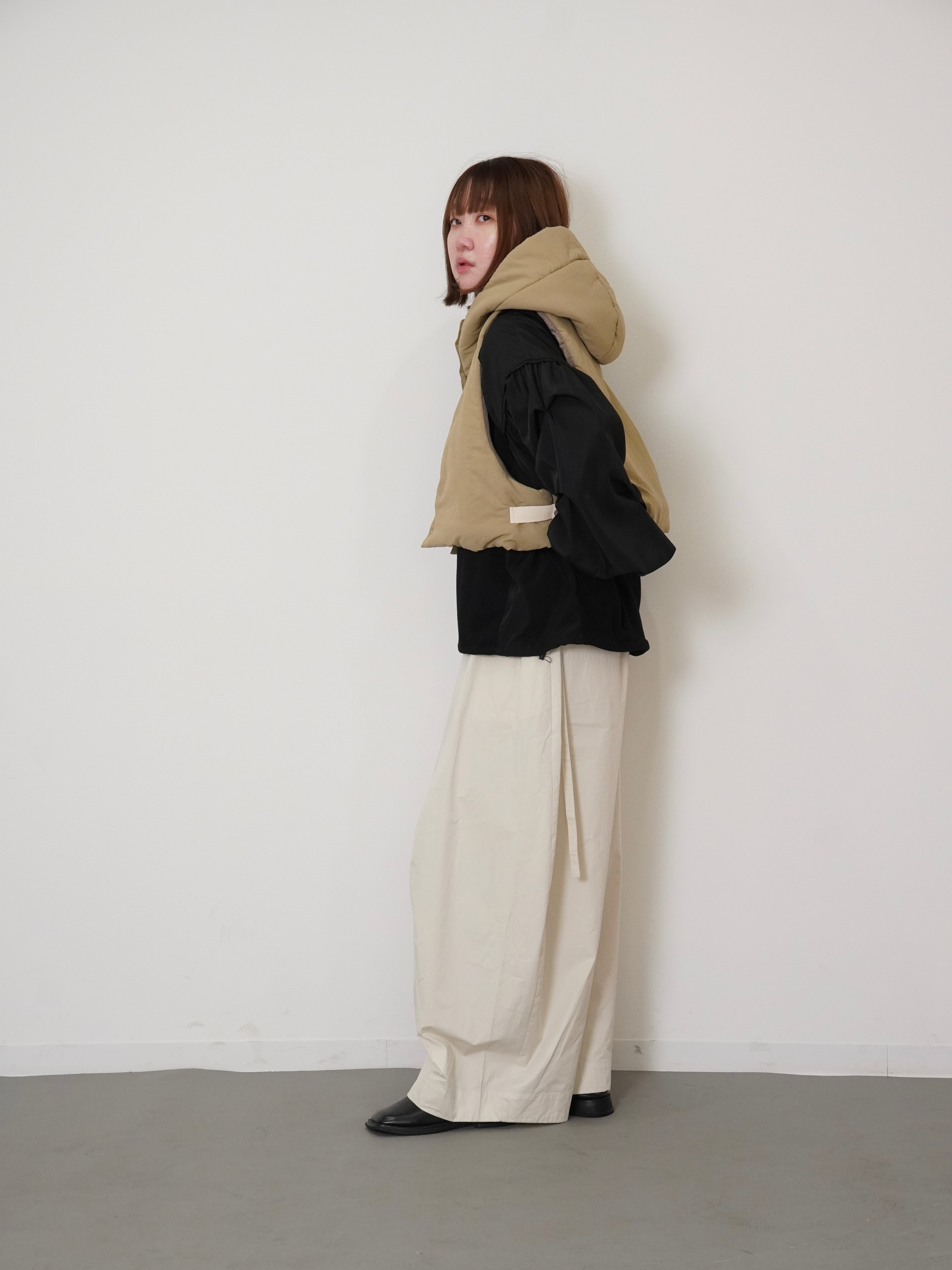 ・ウエストは全ゴム。ボディーと同素材の紐もついています。